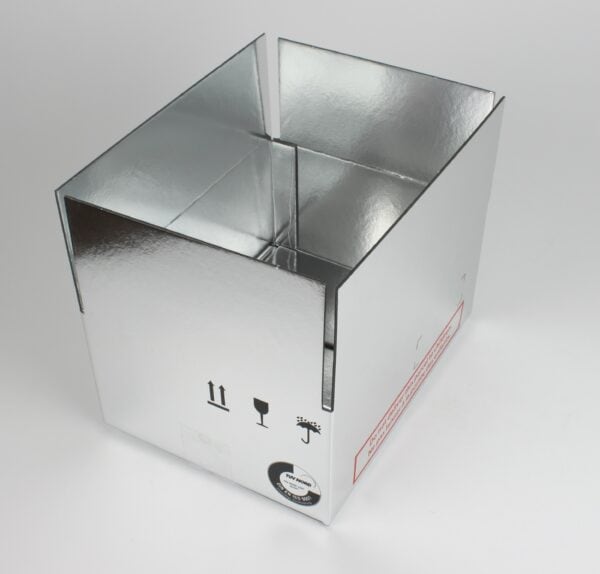 The boxes are made of XPS (extruded, expanded polystyrene) insulation, 5mm thick for shipping times of 12h, and 10mm for times of up to 24h.