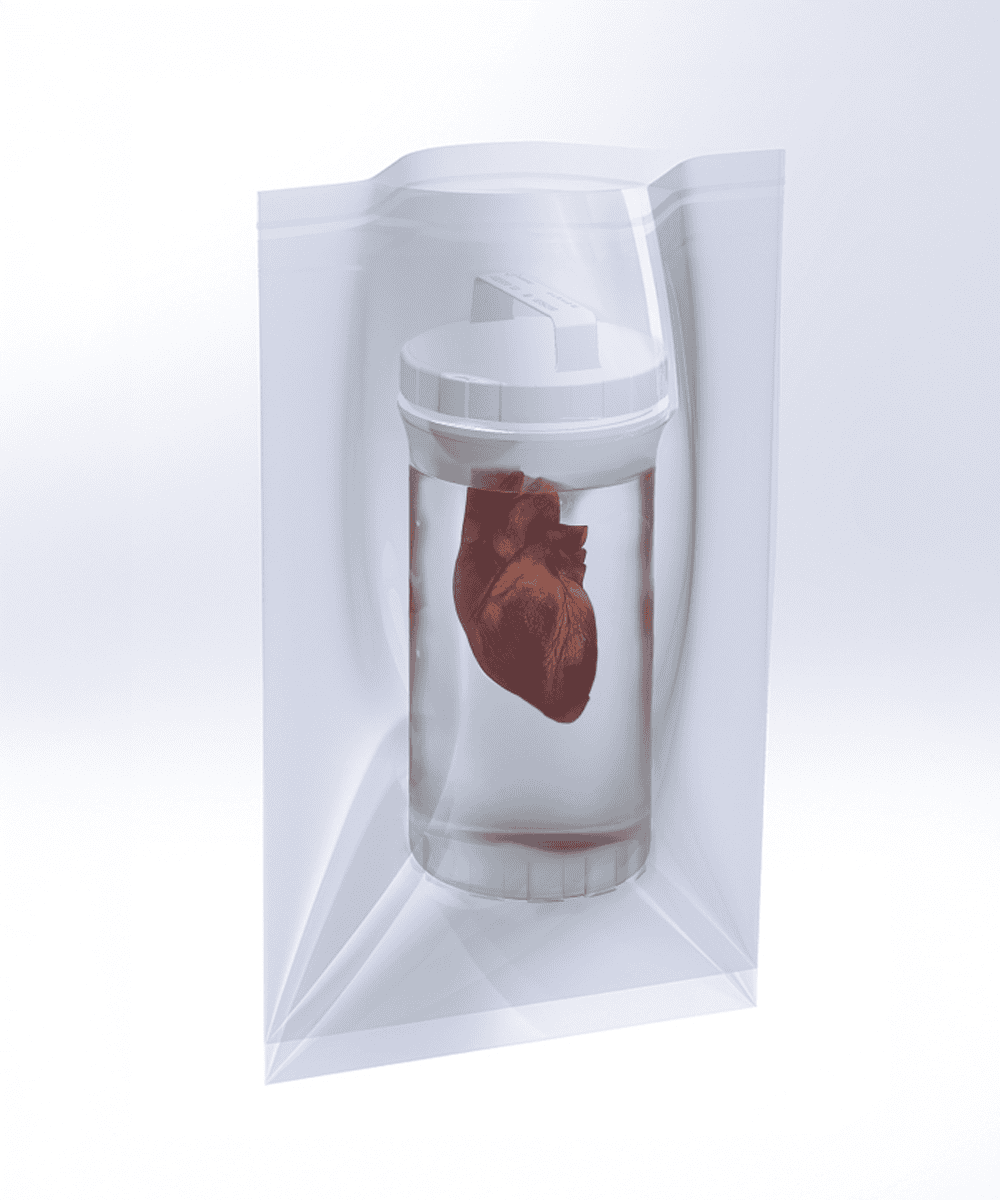 - Kit stérile BIOTAINER 2.8L pour conditionner les greffons de COEUR, REIN, PANCREAS.